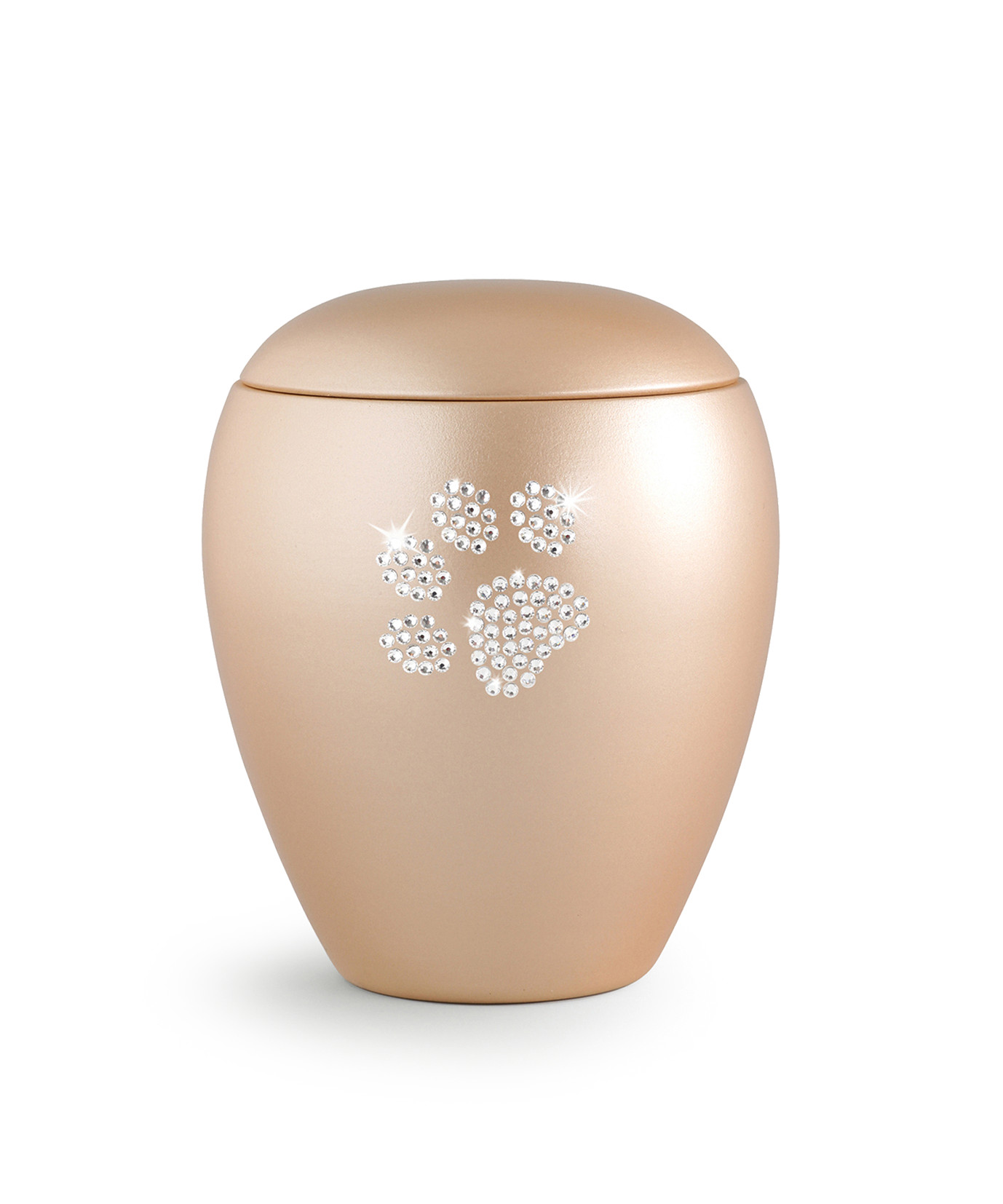 L’urne en céramique a une surface nacrée. Il est décoré d’une patte en Swarovski appliquée à la main.