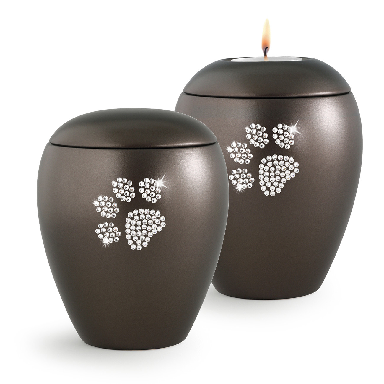 L’urne en céramique a une surface nacrée. Il est décoré d’une patte en Swarovski appliquée à la main.