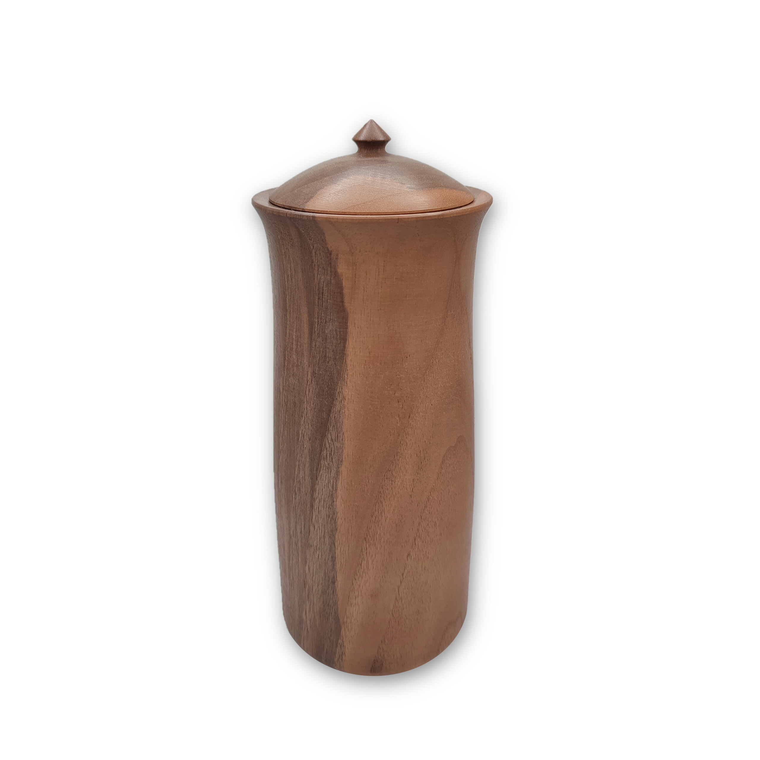 Diese robuste Tierurne aus Baumnuss-Holz wird in der Schweiz handgemacht und ist mit Wachs und Leinöl behandelt. Je nach Holzmaserung variiert die Farbgebung.